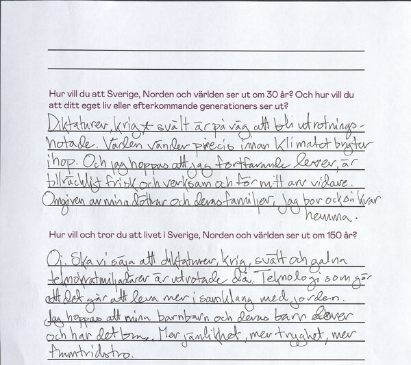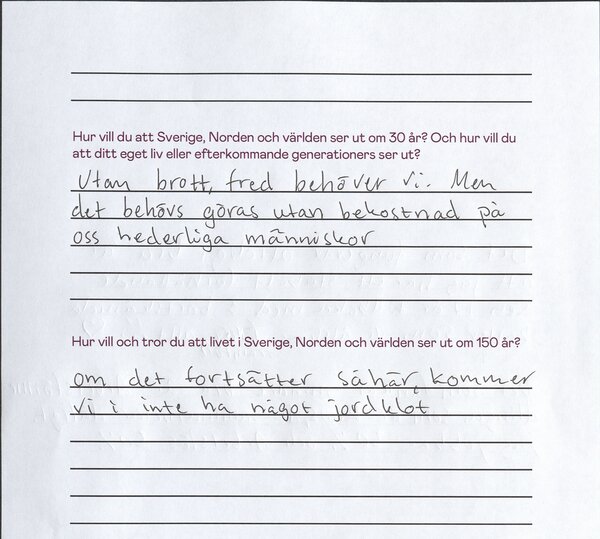 Hur ser du på vår framtid? Med den här insamlingen vill Nordiska museet fokusera på din önskade framtid. Hur vill du att Sverige och världen ska vara i framtiden? Vad kan vi tillsammans göra för att nå dit?